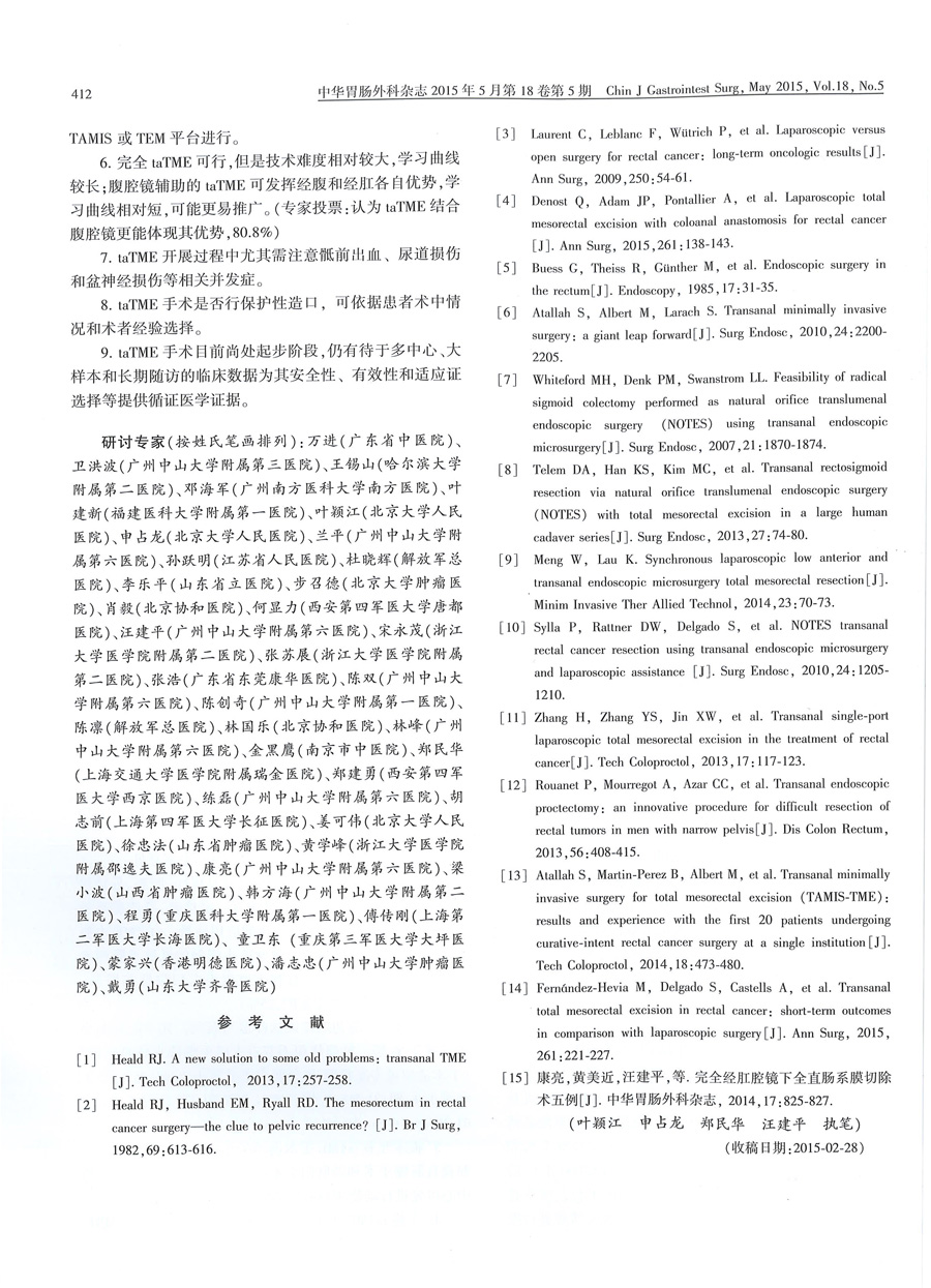 直腸癌經(jīng)肛門(mén)全直腸系膜切除術(shù)專(zhuān)家意見(jiàn)