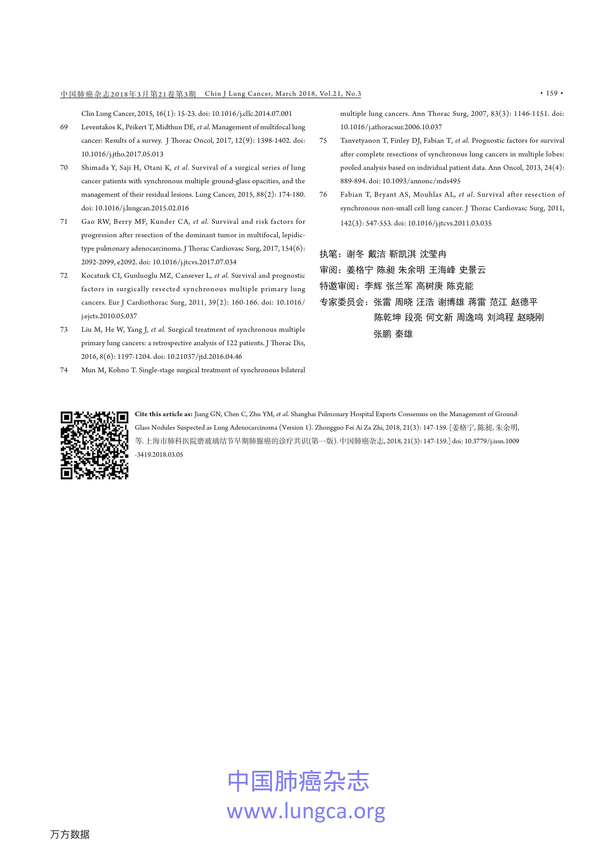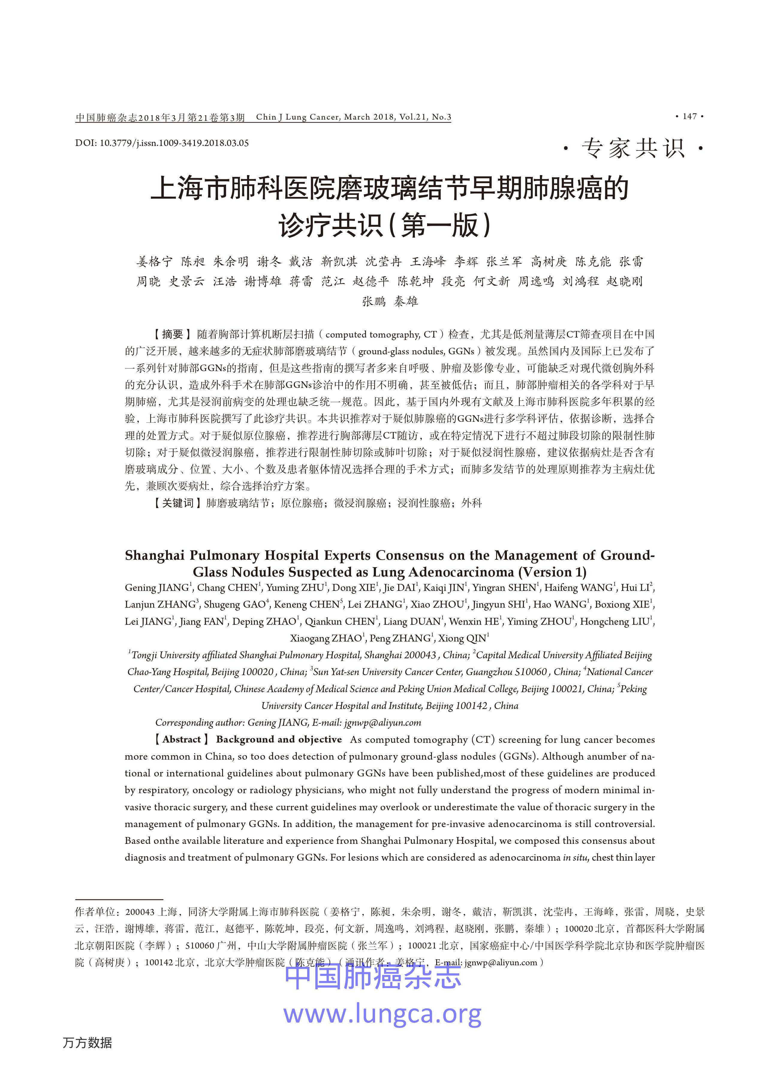 上海市肺科醫(yī)院磨玻璃結(jié)節(jié)早期肺腺癌的診療共識(shí)(第一版)