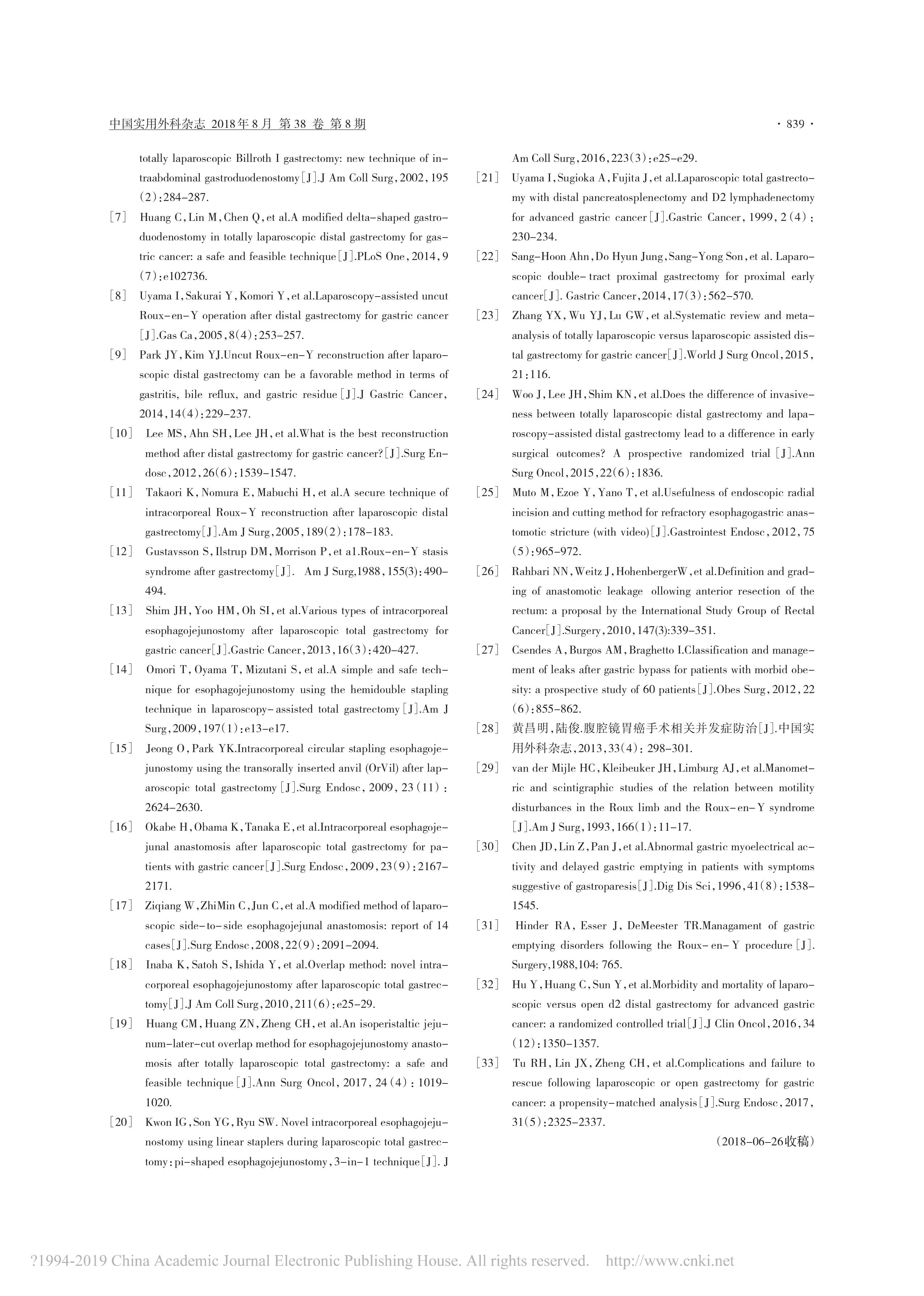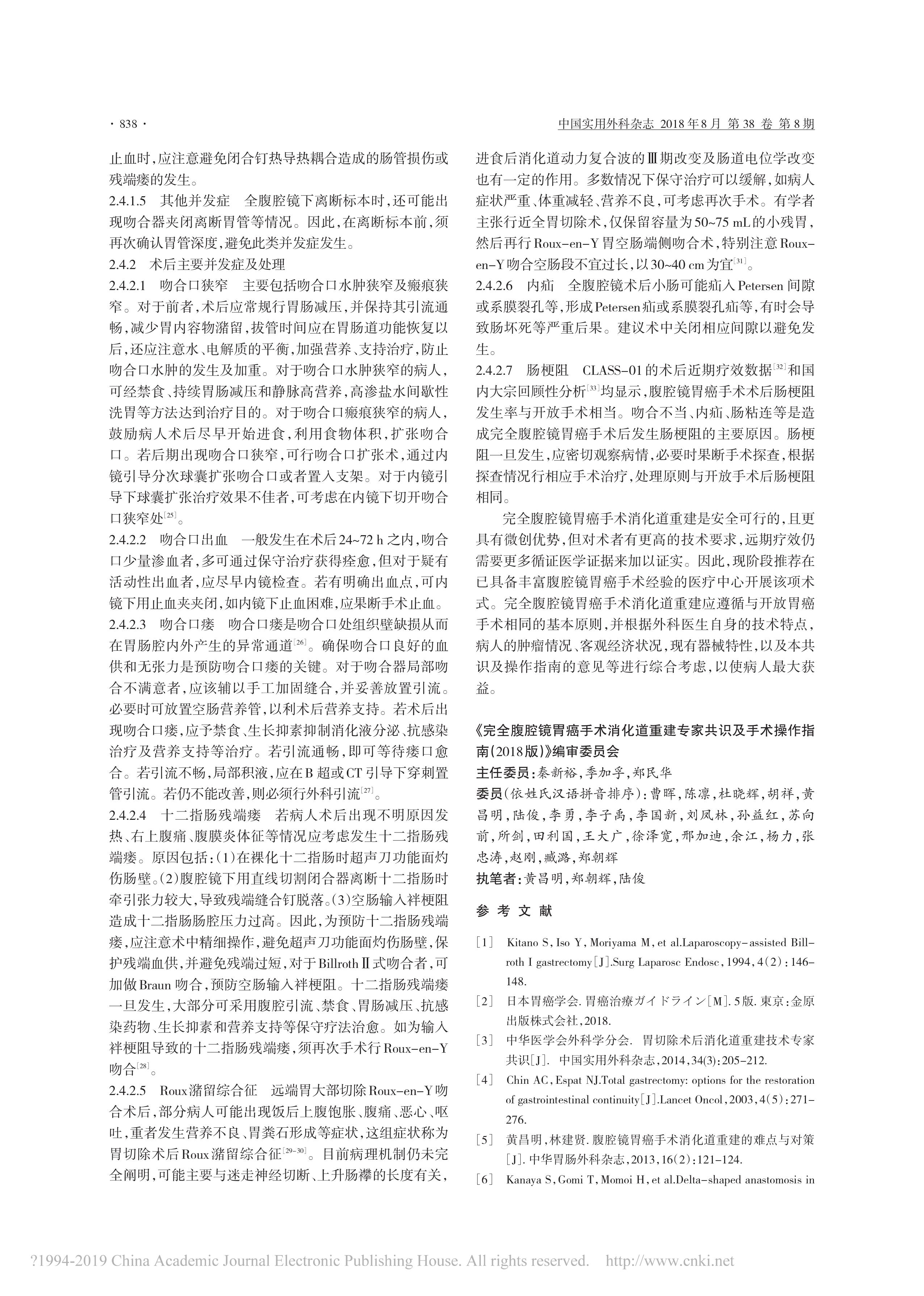 完全腹腔鏡胃癌手術消化道重建專家共識及手術操作指南(2018 版)