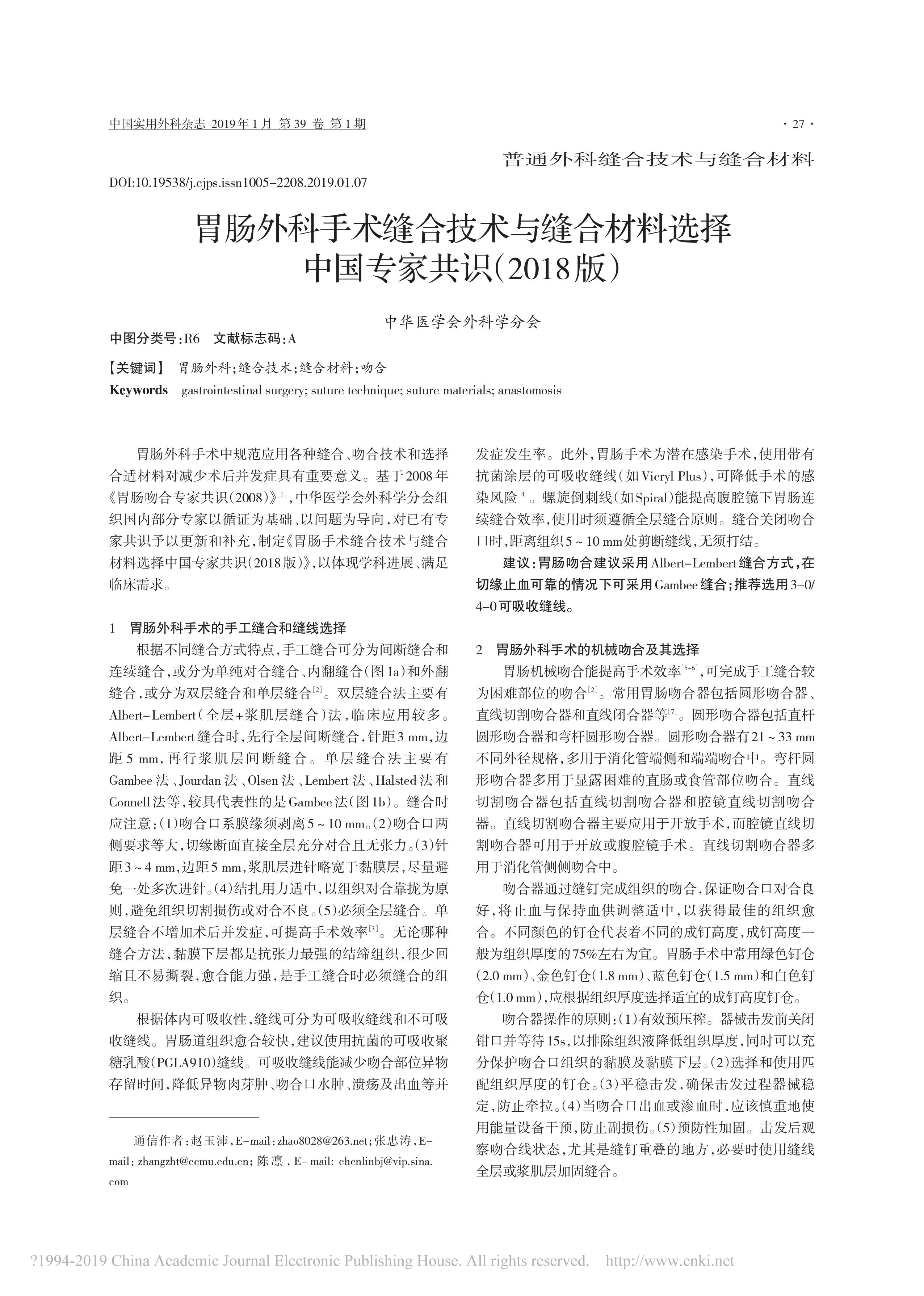 胃腸外科手術(shù)縫合技術(shù)與縫合材料選擇中國(guó)專(zhuān)家共識(shí)(2018 版)