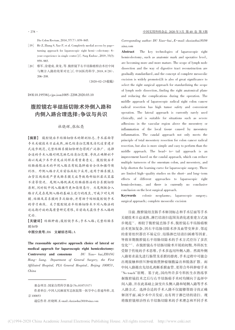 腹腔鏡右半結(jié)腸切除術(shù)外側(cè)入路和 內(nèi)側(cè)入路合理選擇:爭(zhēng)議與共識(shí)