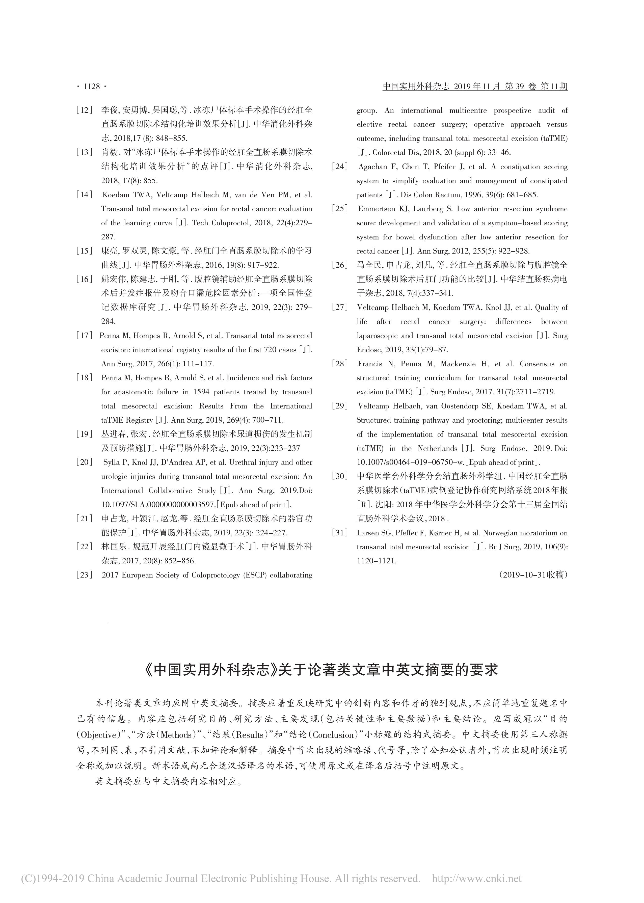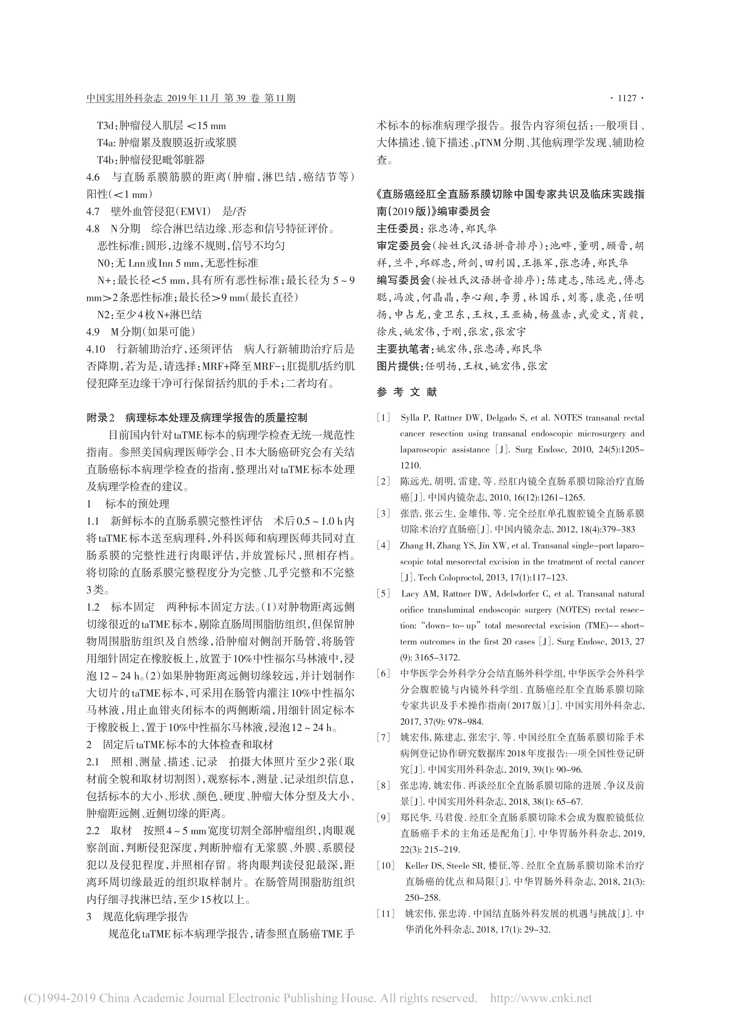 直腸癌經(jīng)肛全直腸系膜切除中國專家共識及臨床實踐指南(2019版)