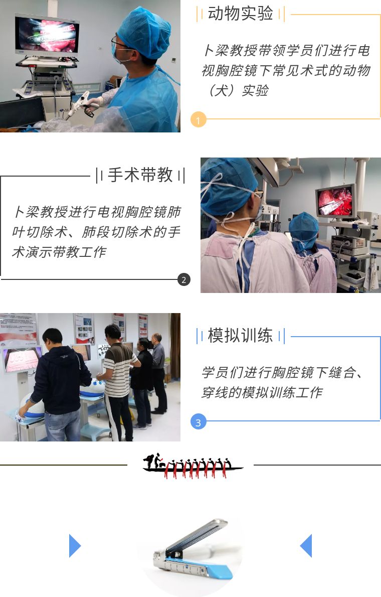與常規(guī)培訓(xùn)班不同,此次培訓(xùn)班沿用了王俊教授所倡導(dǎo)的“理論學(xué)習(xí)、模擬訓(xùn)練、動物實驗、手術(shù)演示和臨床指導(dǎo)”五位一體的中國胸腔鏡醫(yī)師培訓(xùn)模式,將精彩的手術(shù)演示,高質(zhì)量的學(xué)術(shù)講座,生動的動物實驗有機糅合,寓教于學(xué),保證了參訓(xùn)學(xué)員通過學(xué)習(xí)與交流,了解、掌握高效、實用的手術(shù)技巧。