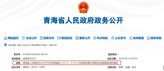 青海省人民政府不久前發(fā)布《青海省2019—2020年度政府集中采購目錄及限額標準》,批量采購省級達到30萬以上、市級達到20萬以上、縣級達到10萬以上的醫(yī)療設(shè)備被納入青海省部門集中采購目錄。