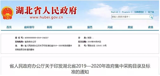 湖北省人民政府同樣也發(fā)布《湖北省2019—2020年政府集中采購目錄及標準的通知》。《目錄及標準》在政府集中采購目錄、分散采購限額標準、公開招標數(shù)額標準等方面作了調(diào)整。