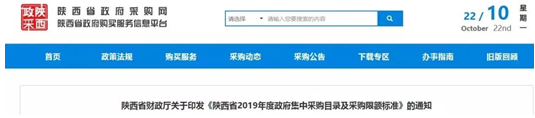 10月,陜西省財政局發(fā)布了《2019年度政府集中采購目錄及采購限額標準》。