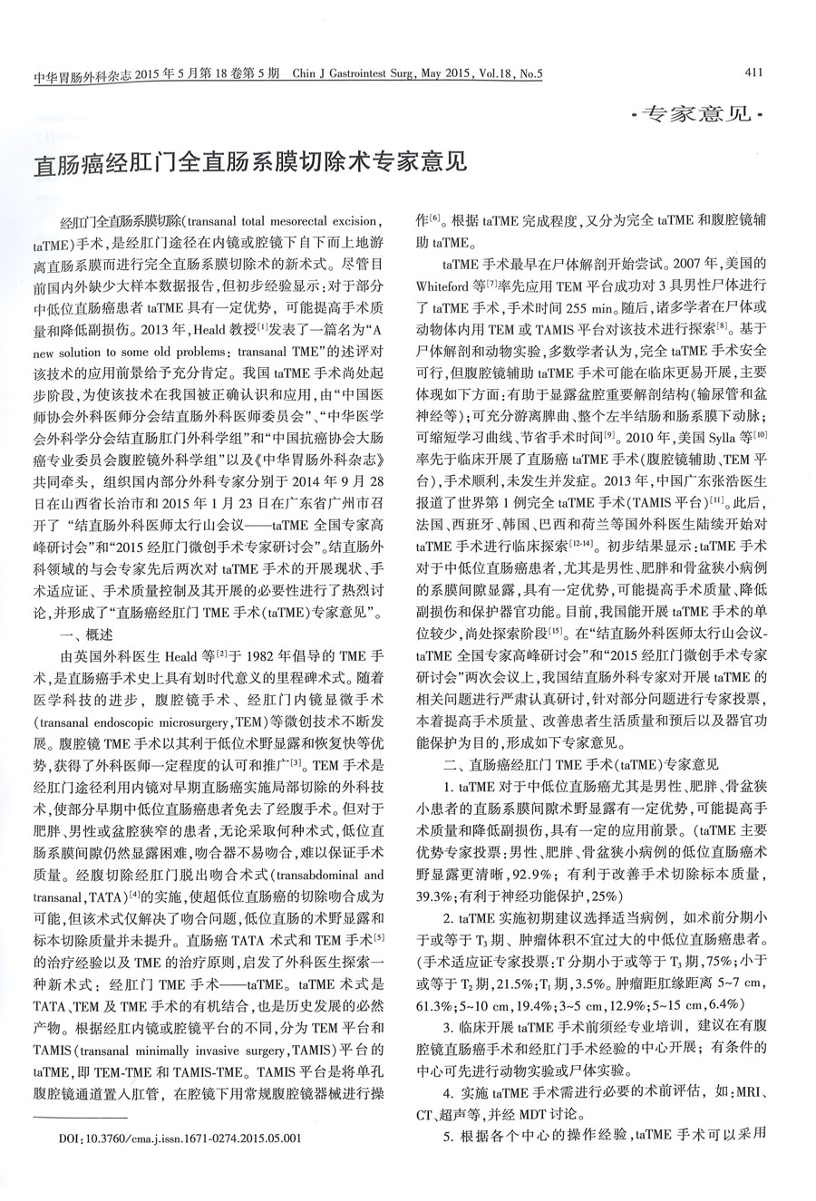 直腸癌經(jīng)肛門(mén)全直腸系膜切除術(shù)專(zhuān)家意見(jiàn)
