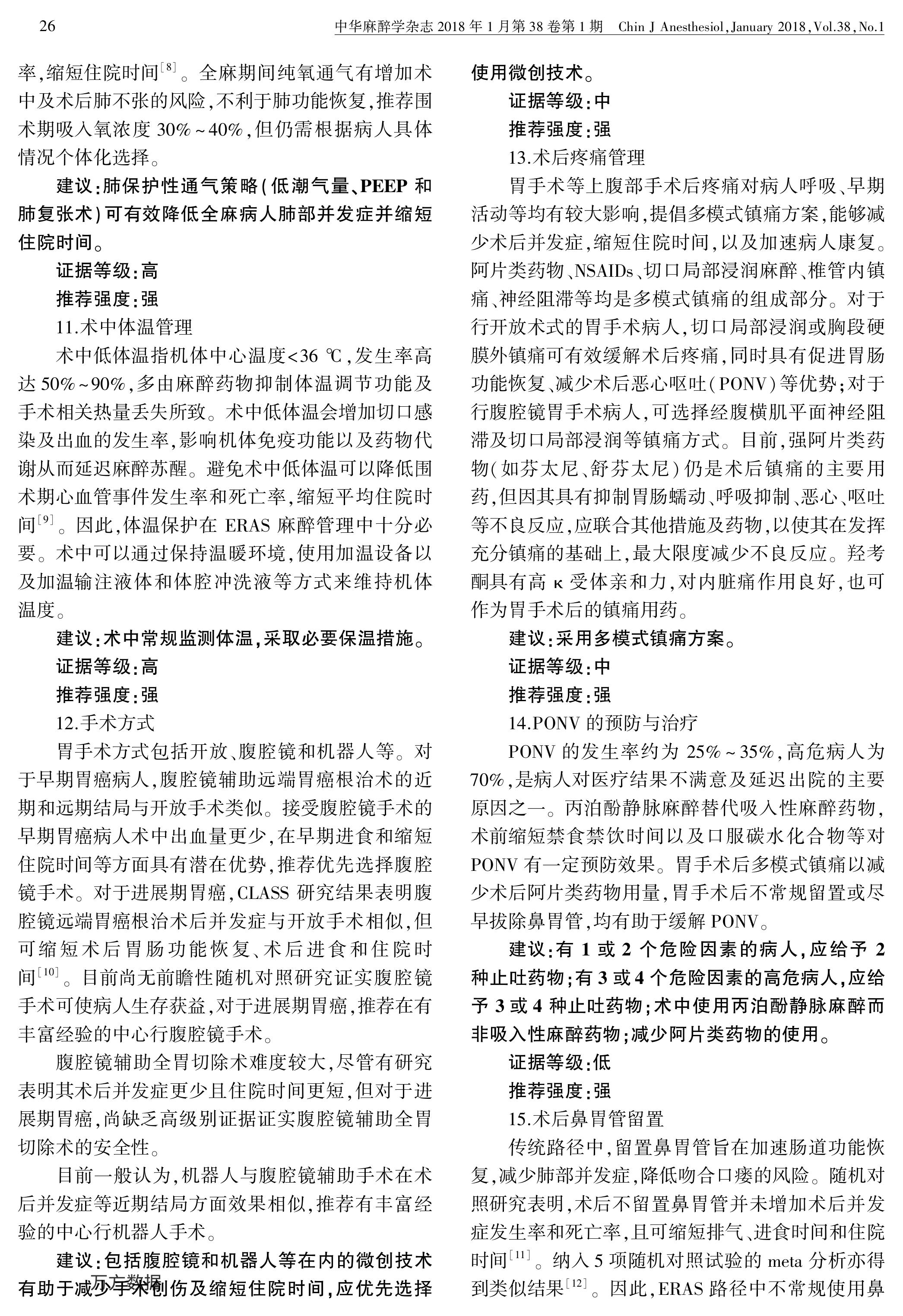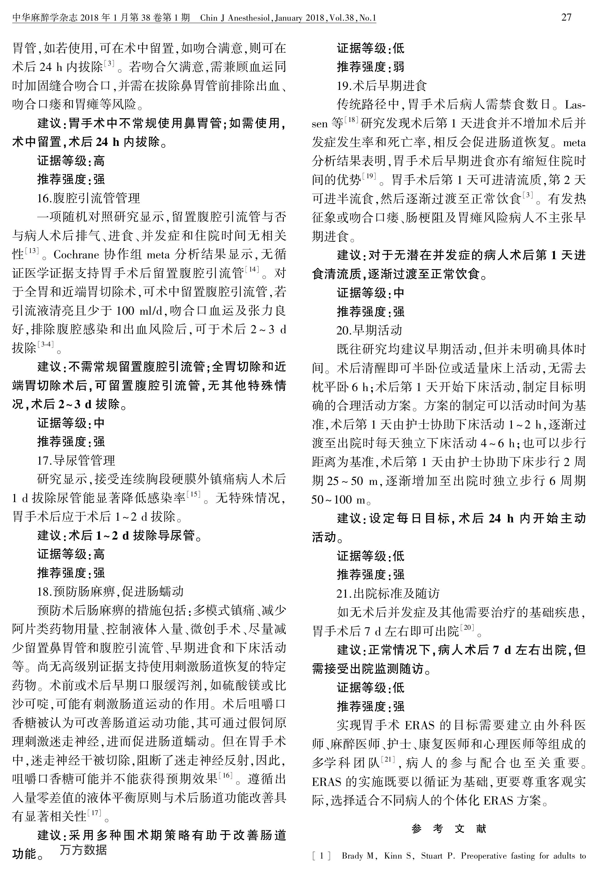 加速康復外科中國專家共識暨路徑管理指南(2018):胃手術(shù)部分