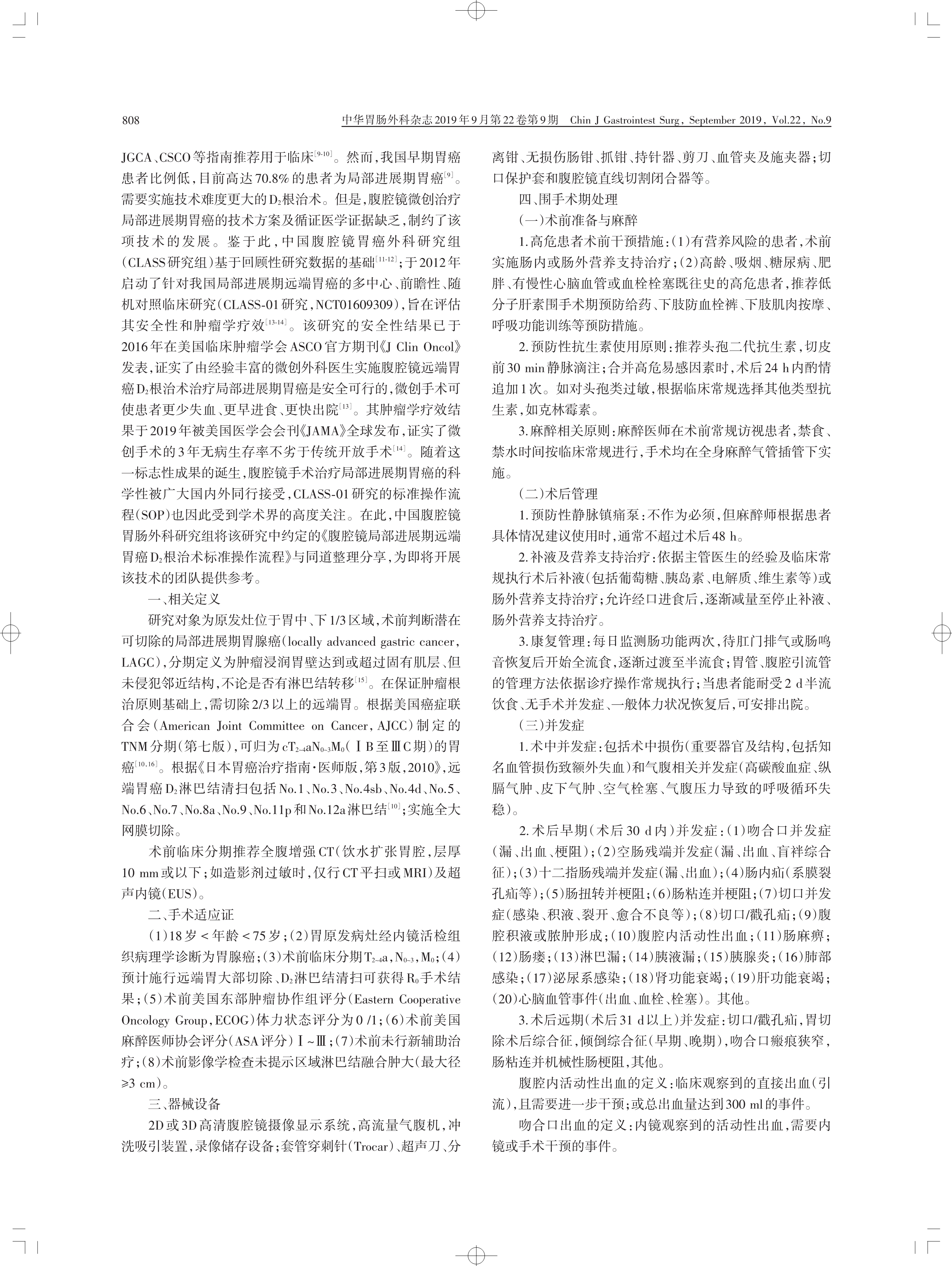 腹腔鏡局部進(jìn)展期遠(yuǎn)端胃癌D2根治術(shù)標(biāo)準(zhǔn)操作流程:CLASS?01研究共識(shí)