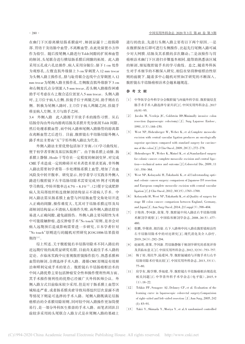 腹腔鏡右半結(jié)腸切除術(shù)外側(cè)入路和 內(nèi)側(cè)入路合理選擇:爭(zhēng)議與共識(shí)