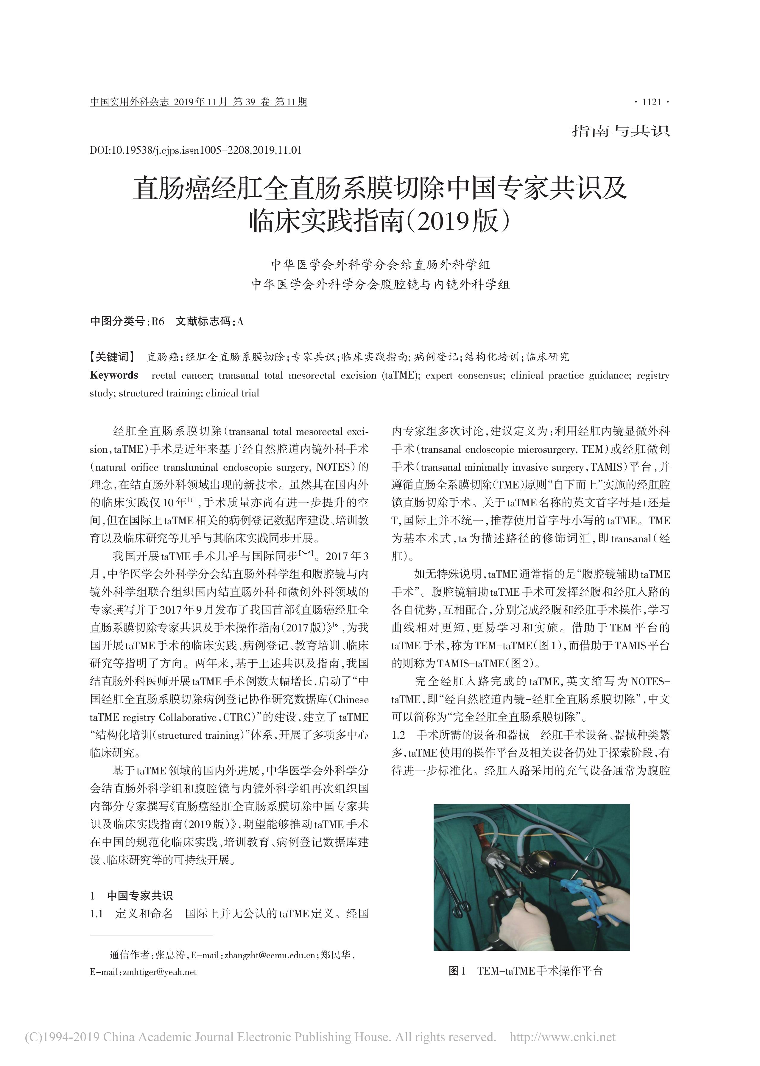 直腸癌經(jīng)肛全直腸系膜切除中國專家共識及臨床實踐指南(2019版)