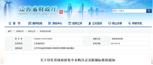 近日,江蘇省財政廳發(fā)布《關(guān)于印發(fā)省級政府集中采購目錄及限額標準的通知蘇財購〔2018〕51號》。